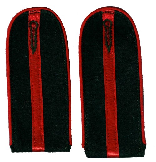 RSECK1.Cossack, Russian and Ukrainian Armies of liberation junior officer shoulder boards on Dark Green with Red piping and Red center stripe. Center stripe is 1cm. $20.00pr |