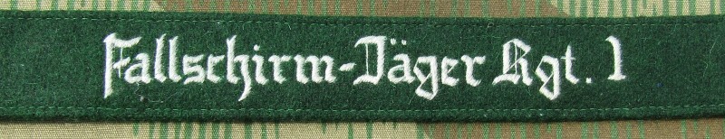 RSE158.Fallschirm-Jager Rgt 1 enlisted ranks cufftitle. Hand embroidered thread on Green. $19.95 |
