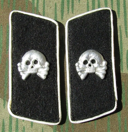 RSE90.H.G.Division officer collar tabs.Skull on white cloth with aluminum