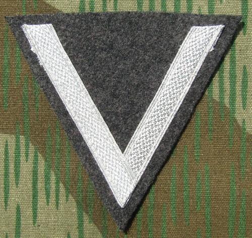 RSE557.Luftwaffe Obergefreiter sleeve chevron. Aluminum tress on black wool. $10.95 |