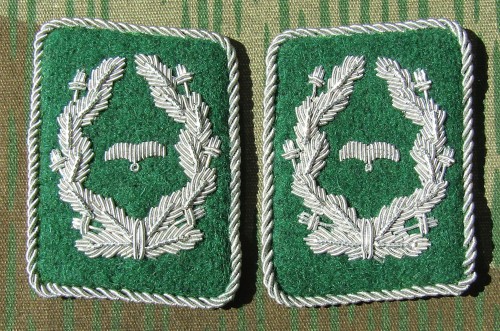 RSE612.Luftwaffe enlisted ranks collar tabs.Green cloth with White piping