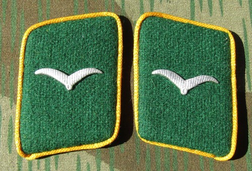 RSE613.Luftwaffe enlisted ranks collar tabs.Green cloth with Gold-Yellow piping