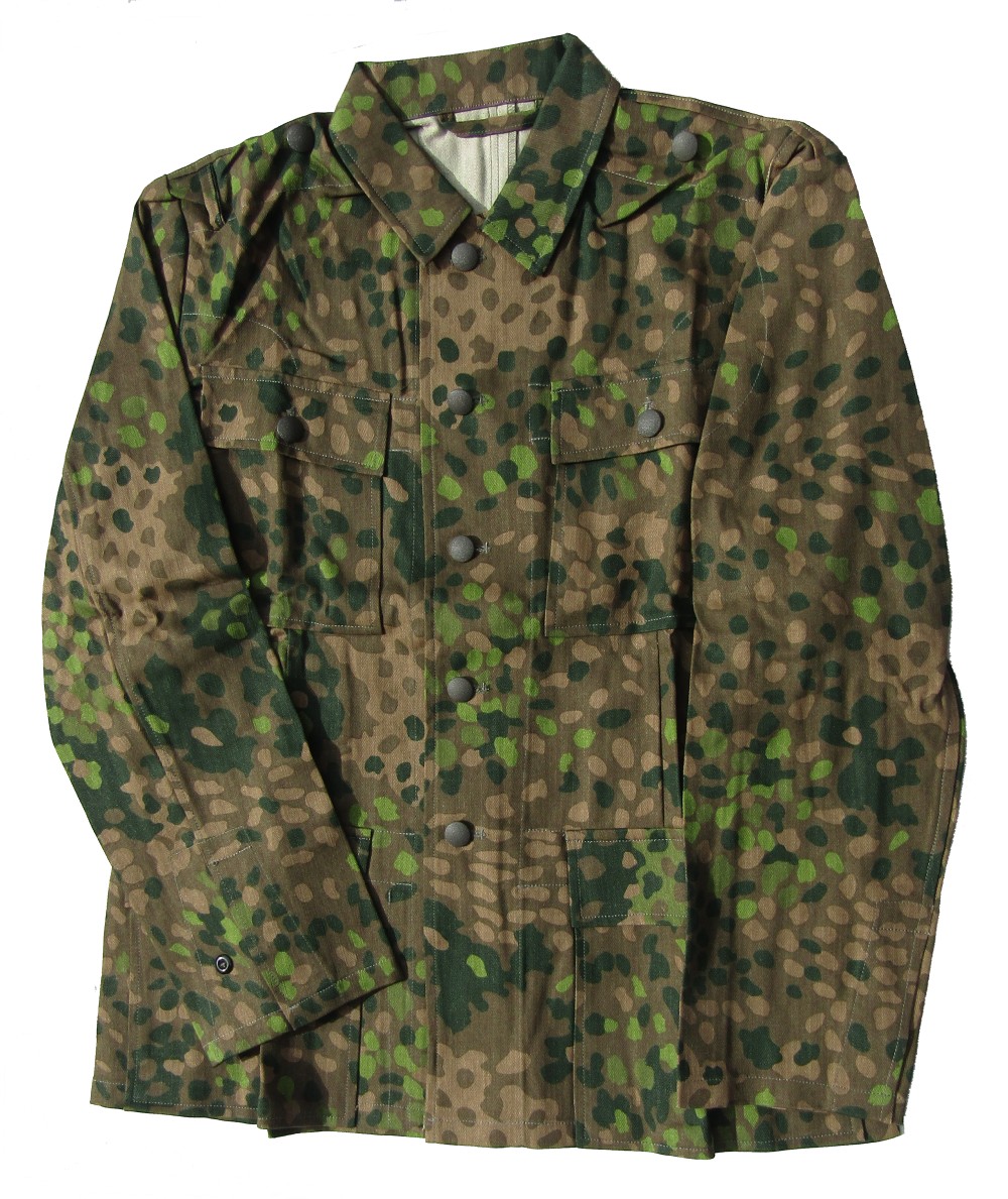 WW2 M44 Waffen SS DOT pattern jackets. Nice heavy 100% Cotton twill fabric, Roller printed. 4 pocket with loops and buttons for shoulder boards. $39.95 |