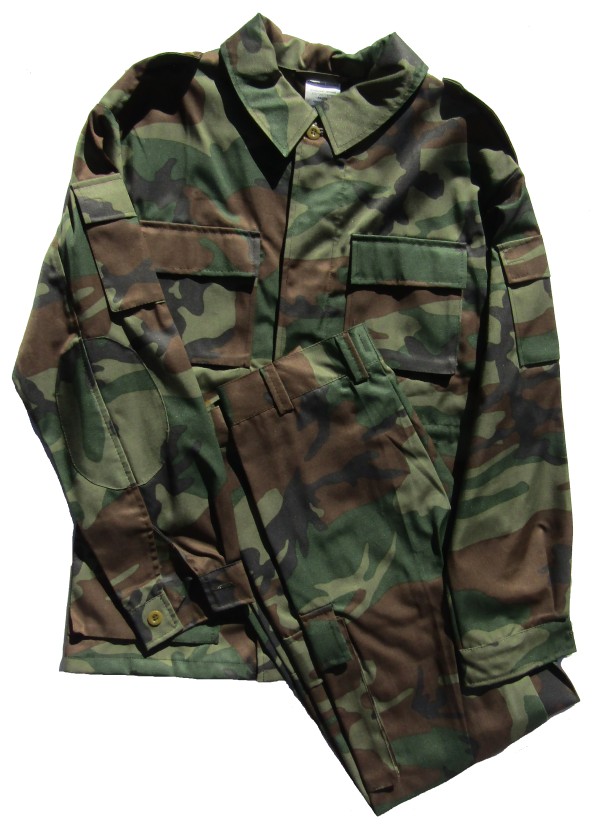 camouflage set.Long sleeve shirt has 2 upper pockets and 1 sleeve