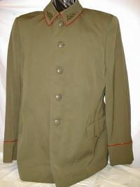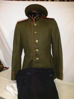 uniform.Olive tunic with red piping around cuffs and collar.Green embroidered collar