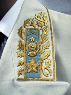 embroidery around cuffs and gold embroidered generals collar insignia,