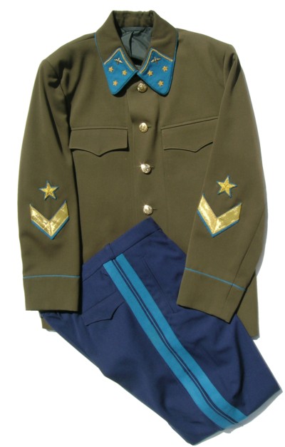 model 1943 service dress uniform (jacket and blue breeches) for Major General Infantry troops. Jacket fabric is high quality late Soviet Army Generals fabric. Buttons are late Soviet Generals type. Size is 58-4. $495.00 |