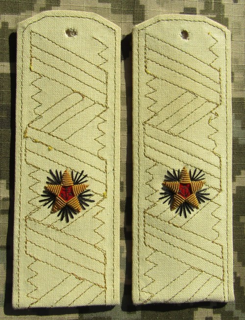 Beige shoulder boards with gold stitching,gold/black/red stars.$60.00 |