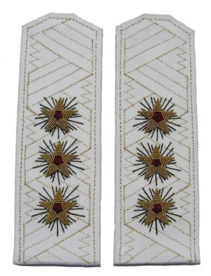 White shoulder boards with gold stitching and gold/black/red stars.$60.00 |