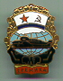 Soviet medalic BADGE with an image of a TANK. Without any inscription, with small red